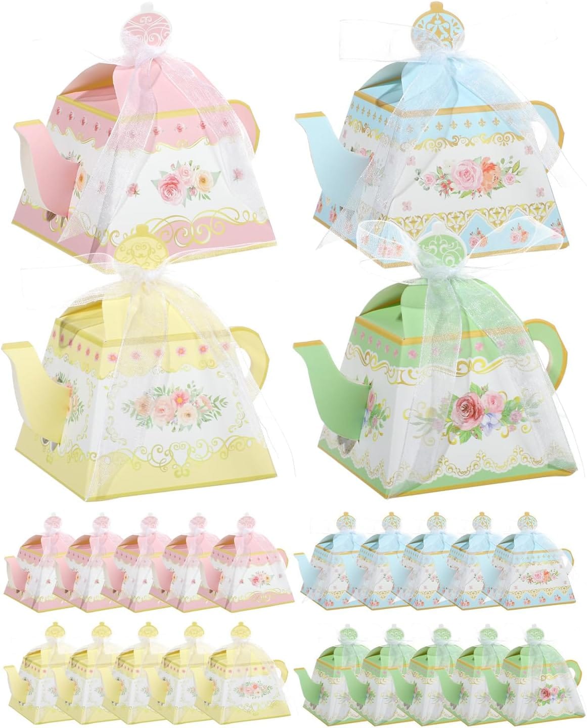 Pretty pastel favors wrapped with silk ribbons for a Bridgerton bridal shower