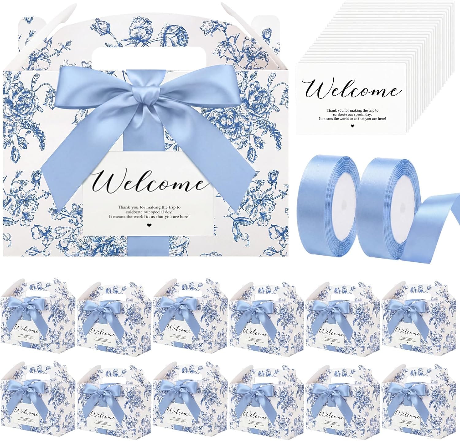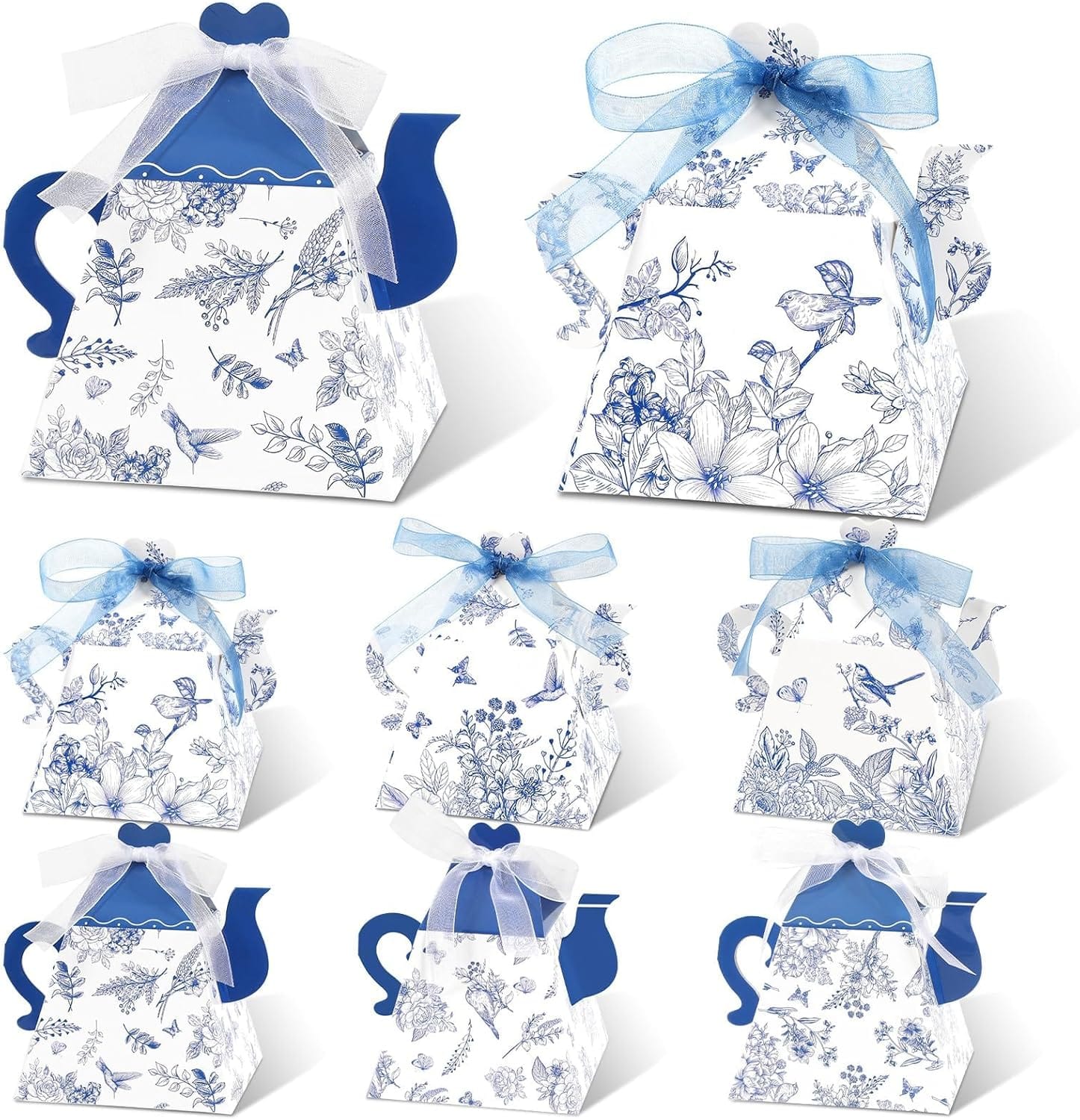 Small blue-and-white favor boxes filled with French macarons, tea satchels, or lavender sachets make perfect parting gifts. Wrap them with ivory ribbon and a thank-you tag that matches the invitations for a polished finish.