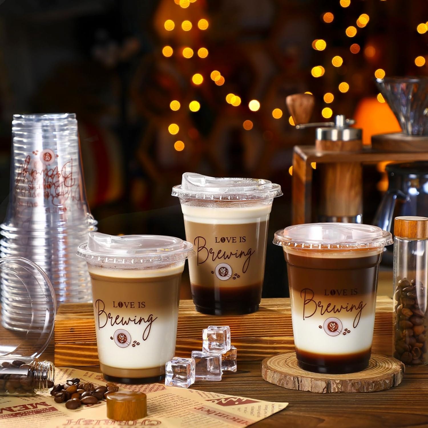 Candle Groupings: Create clusters of pillar candles in varying heights on wooden slices or in glass hurricanes filled with coffee beans. The flickering light mimics the ambiance of intimate coffee shop corners.