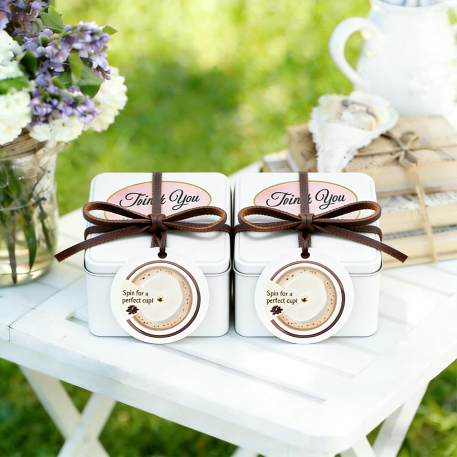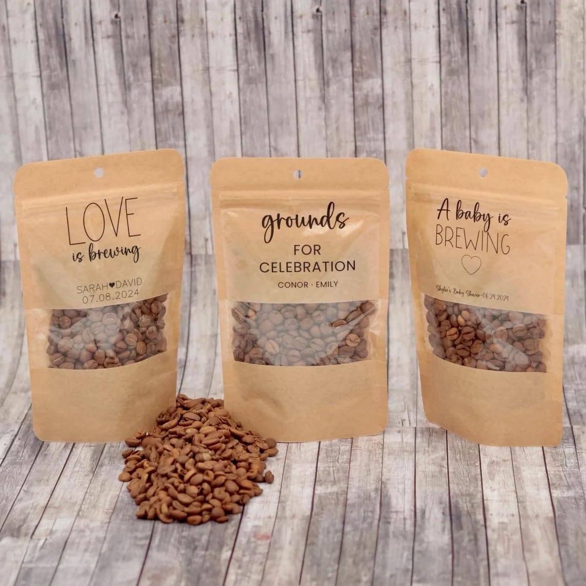 The presentation of your favors matters as much as the favors themselves. Use kraft paper bags, small burlap pouches, or clear cellophane bags tied with twine or ribbon in your theme colors. Custom labels or tags with "Love is Brewing" and the celebration date add a professional, memorable touch.