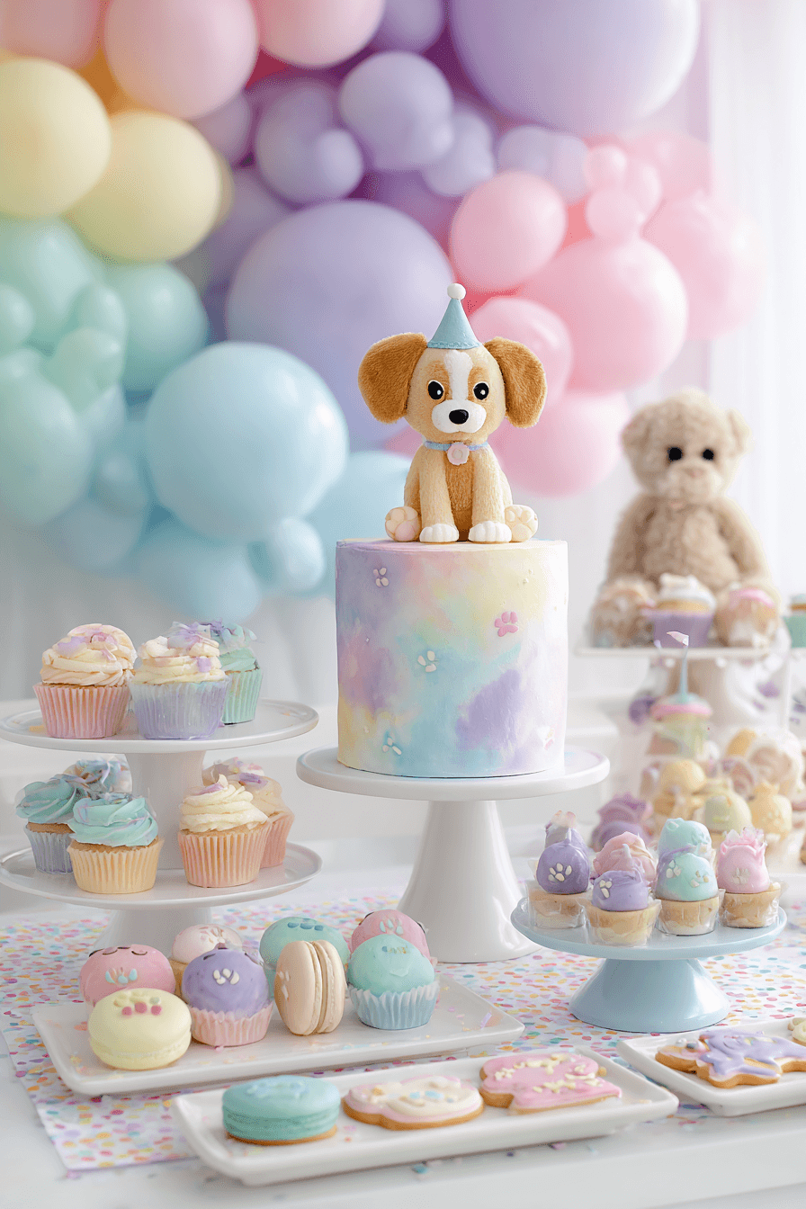 It is time to paw-ty — and this puppy birthday party is the most dreamy, pastel-perfect celebration you are ever going to see. Soft pink, lavender, sky blue, peach, and cream come together in a palette that feels like every sweet thing at once — cotton candy clouds, spring gardens, and the fluffiest puppies imaginable all rolled into one magical birthday setting. If your little girl is obsessed with puppies and everything soft and beautiful, this is the theme that is going to make her heart absolutely soar.