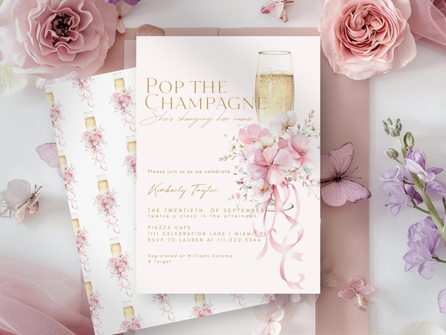 “Pop the Champagne, She’s Changing Her Name! Join us in toasting [Bride’s Name] at her bubbly bridal shower.”