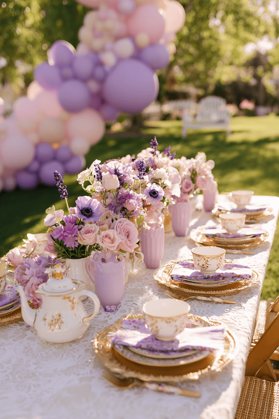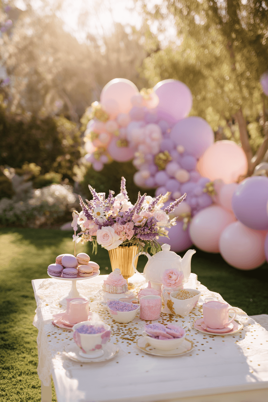 Every little girl deserves a birthday party that makes her feel like royalty — and a Let's Par-Tea birthday party delivers exactly that, from the moment the invitation lands in the mailbox to the last sip of tea at the end of the afternoon. This theme wraps a girls' birthday celebration in the most enchanting, lavender-dusted world: soft purple, blush pink, gold, and cream layered through lace tablecloths, china teacups, and an outdoor tablescape that looks like it was lifted from a fairy tale.